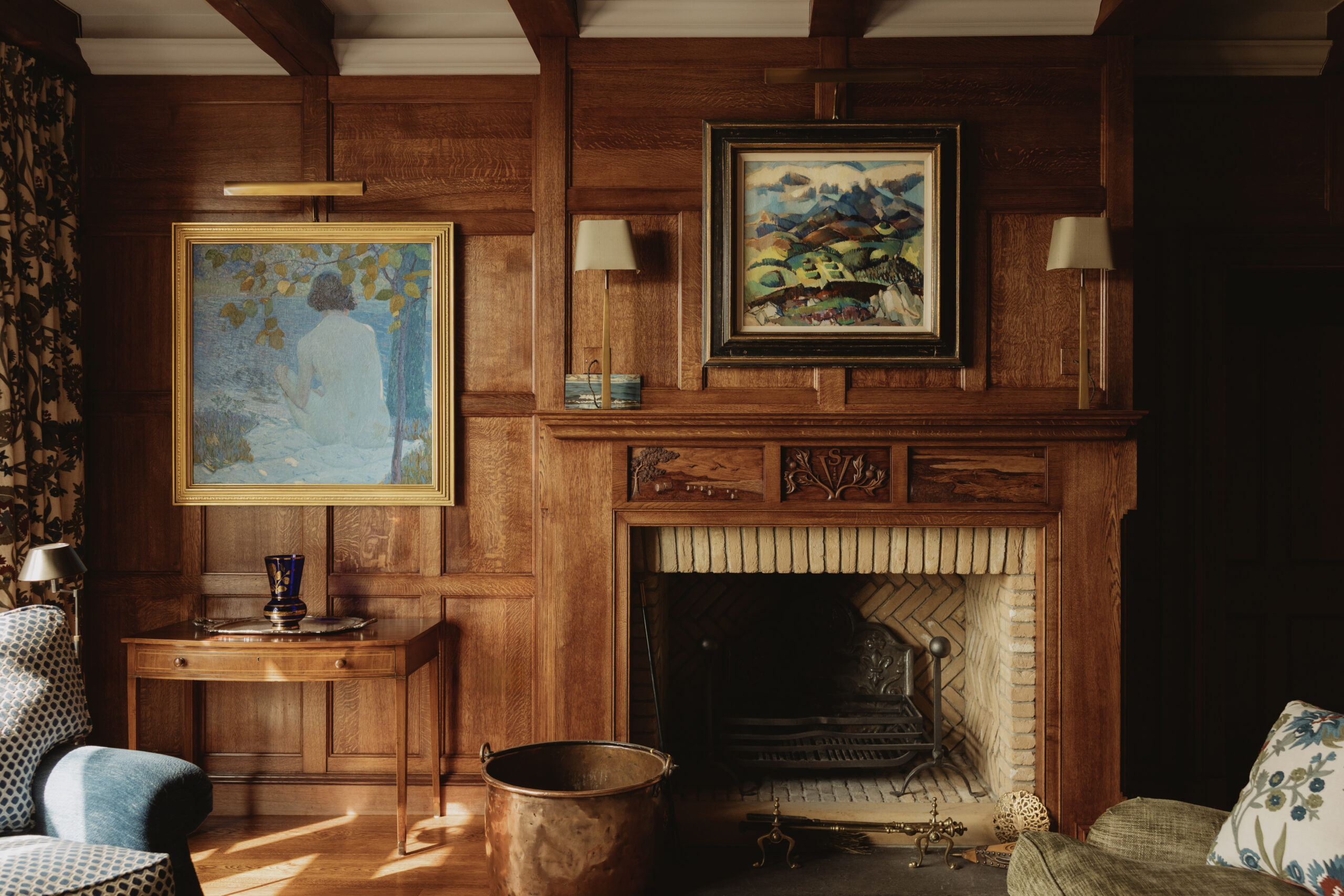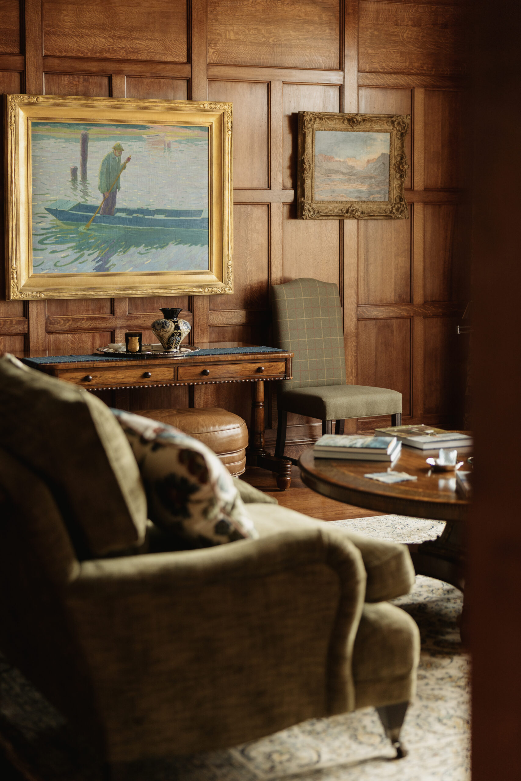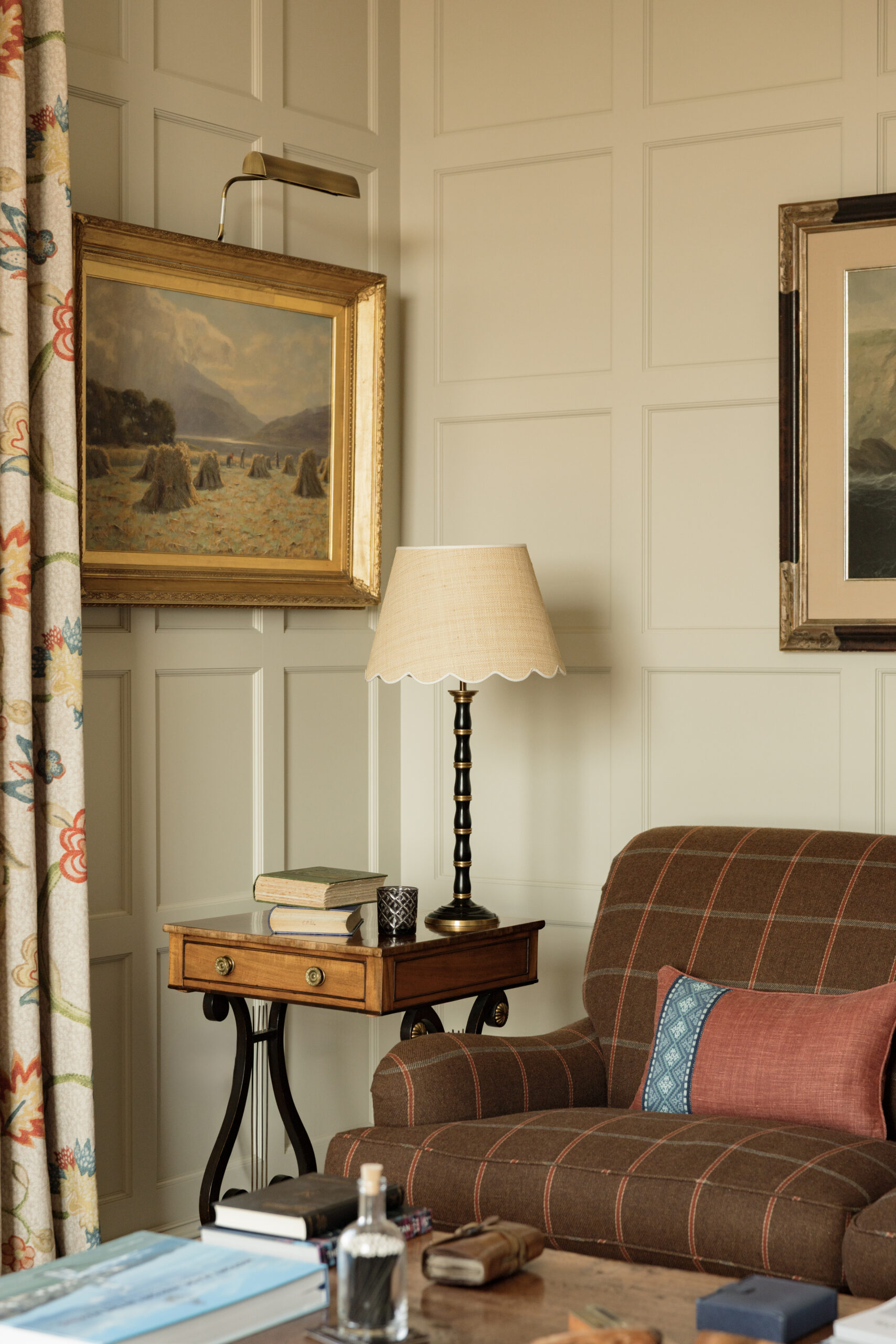 Set along the eastern coast of the wild Scottish Highlands, this charming private residence was completely restored by its owner to provide a comfortable basecamp by the sea. Laurence McIntosh was charged with completing all the architectural joinery, including several panelled rooms, a suite of pocket doors, and a substantial in-frame kitchen with a custom-built American-style fridge/freezer.