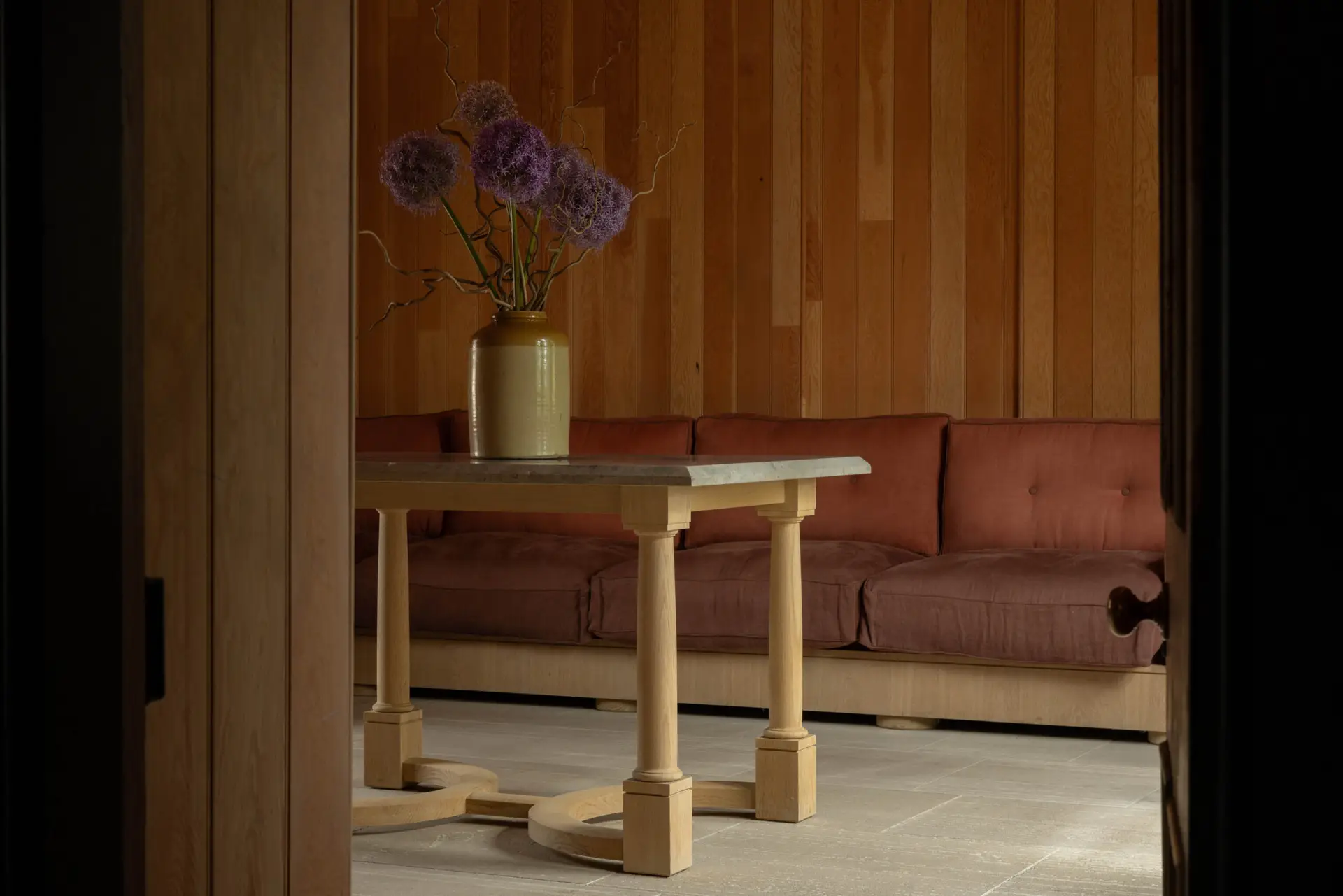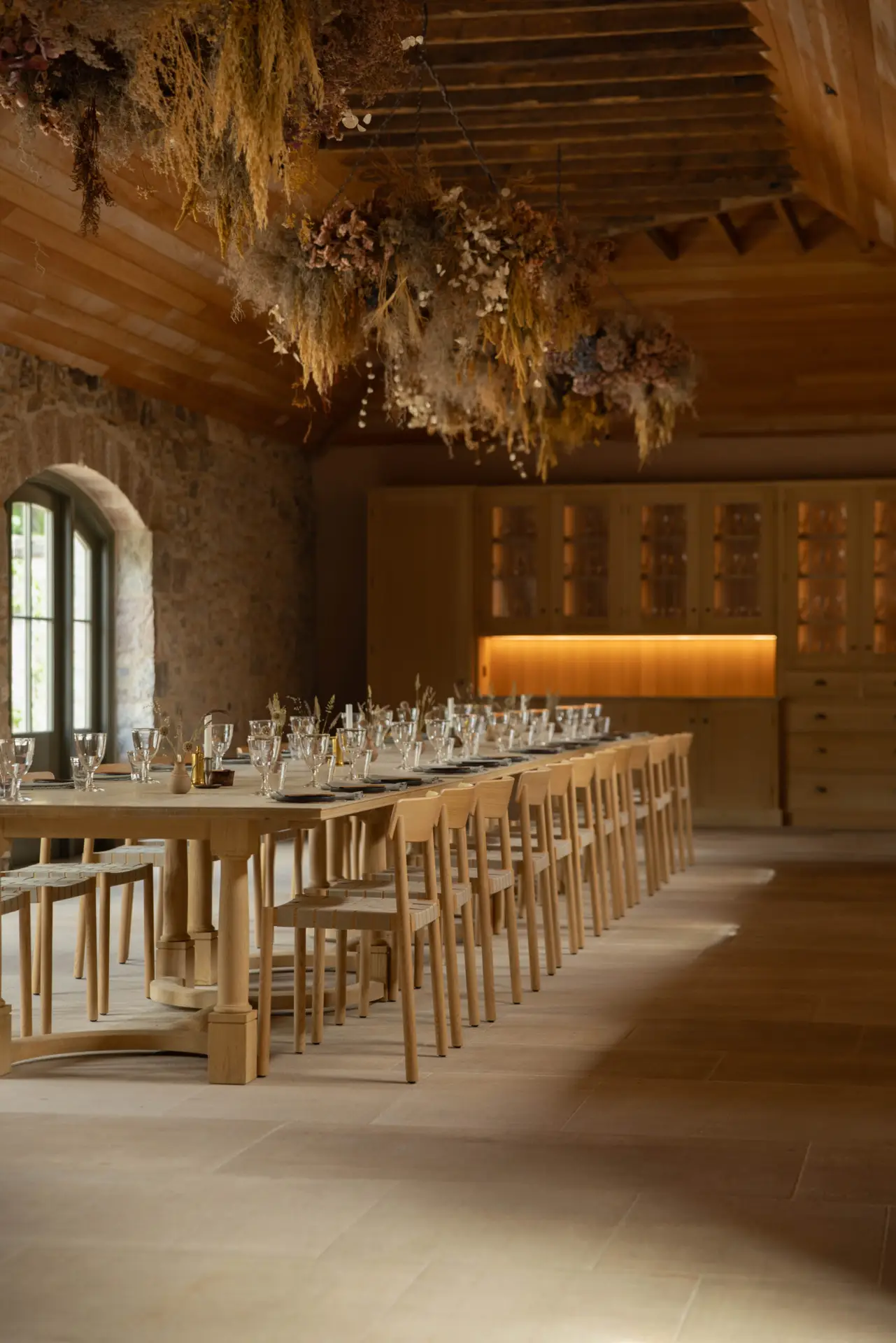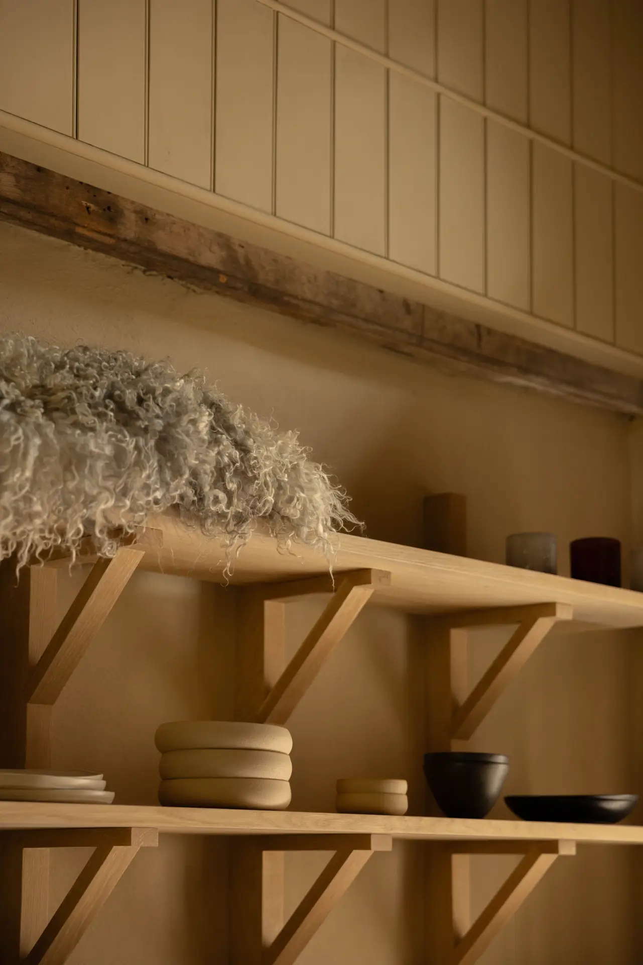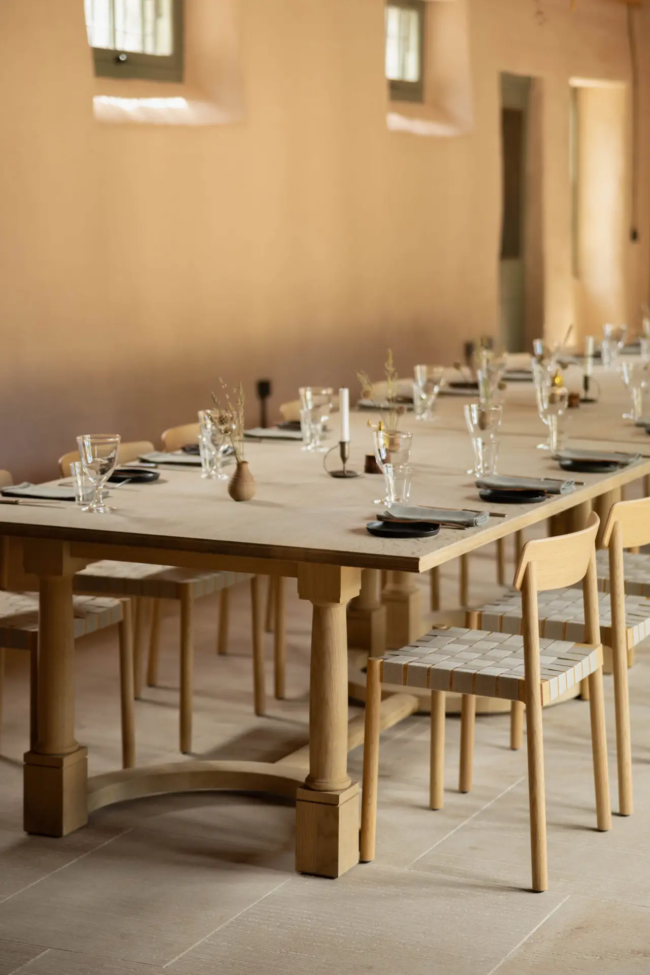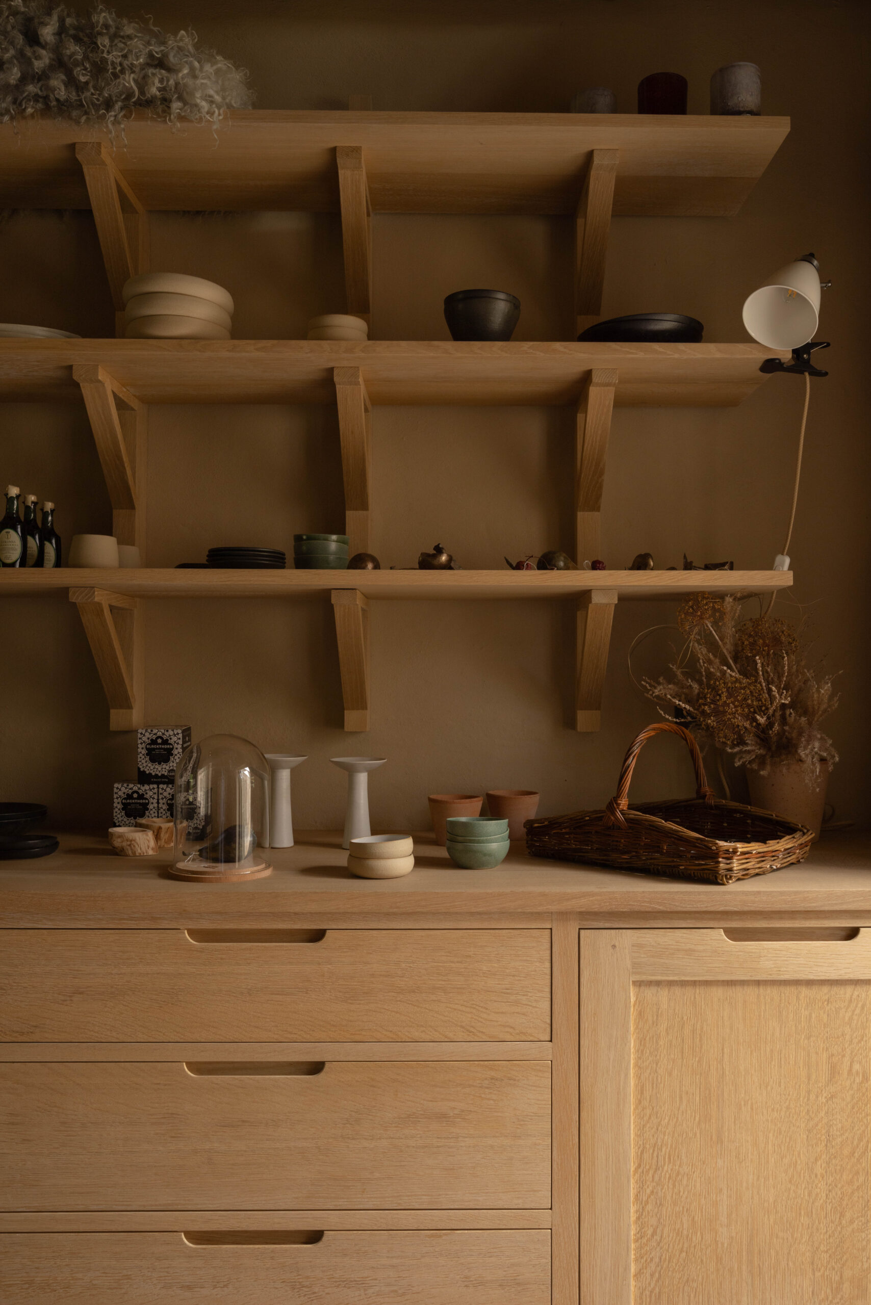 Our core brief was to create pieces of furniture that reflected a feeling of reinterpreted vernacular, while also honouring a strong tradition of Danish craft evident throughout the estate. Our furniture and built-ins have to maximise the tactility of their natural materials – such as soaped European oak and Jura grey limestone – by letting their forms and feelings do the talking.
