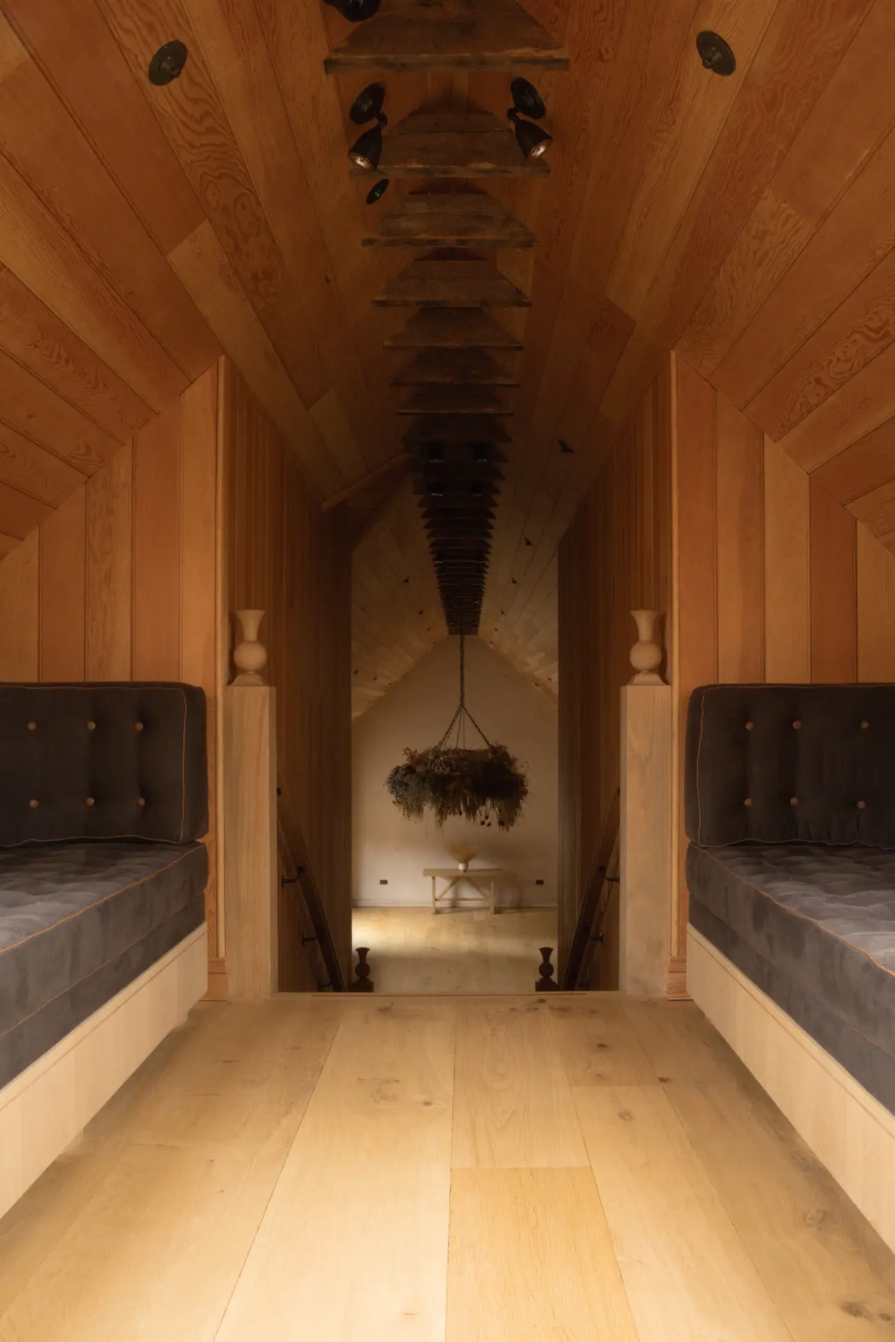 We also create a range of bespoke benches placed throughout the steading, allowing the design language established in the dining and tasting rooms to carry on through the building.